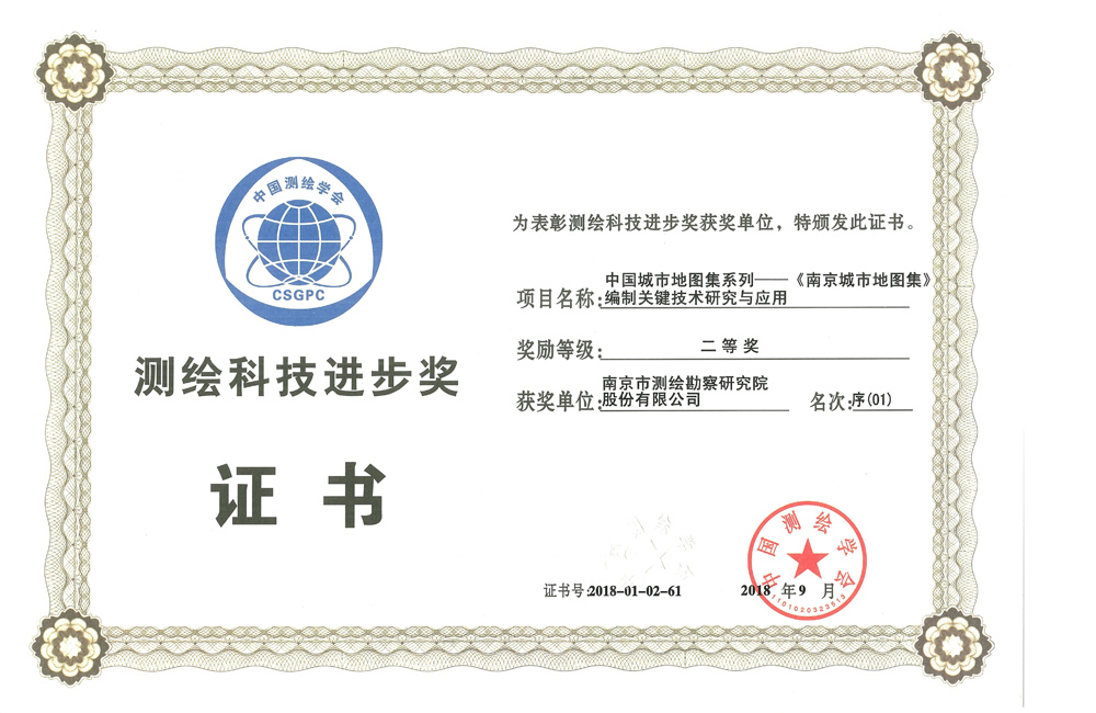 全国3044am永利集团官网科技进步二等奖——中国城市地图集系列-《南京城市地图集》编制关键技术研究与应用
