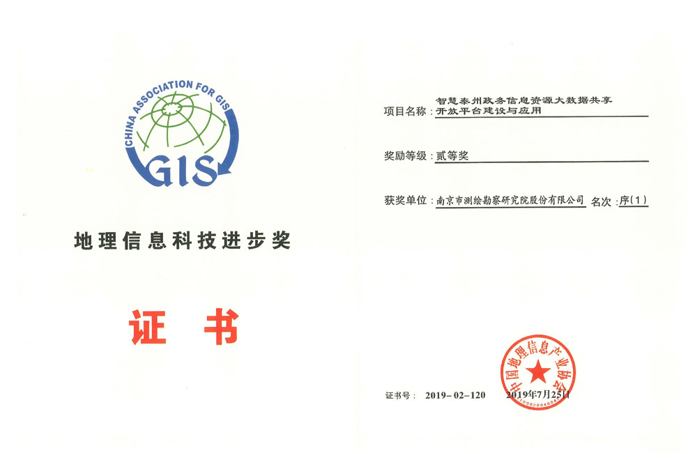 中国地理信息科技进步二等奖——智慧泰州政务信息资源大数据共享开放平台建设与应用