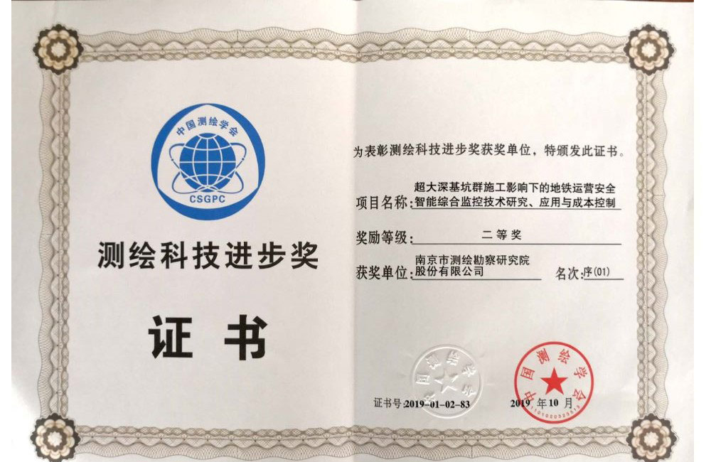 全国3044am永利集团官网科技进步二等奖——超大深基坑群施工影响下的地铁运营安全智能综合监控技术研究、应用与成本控制