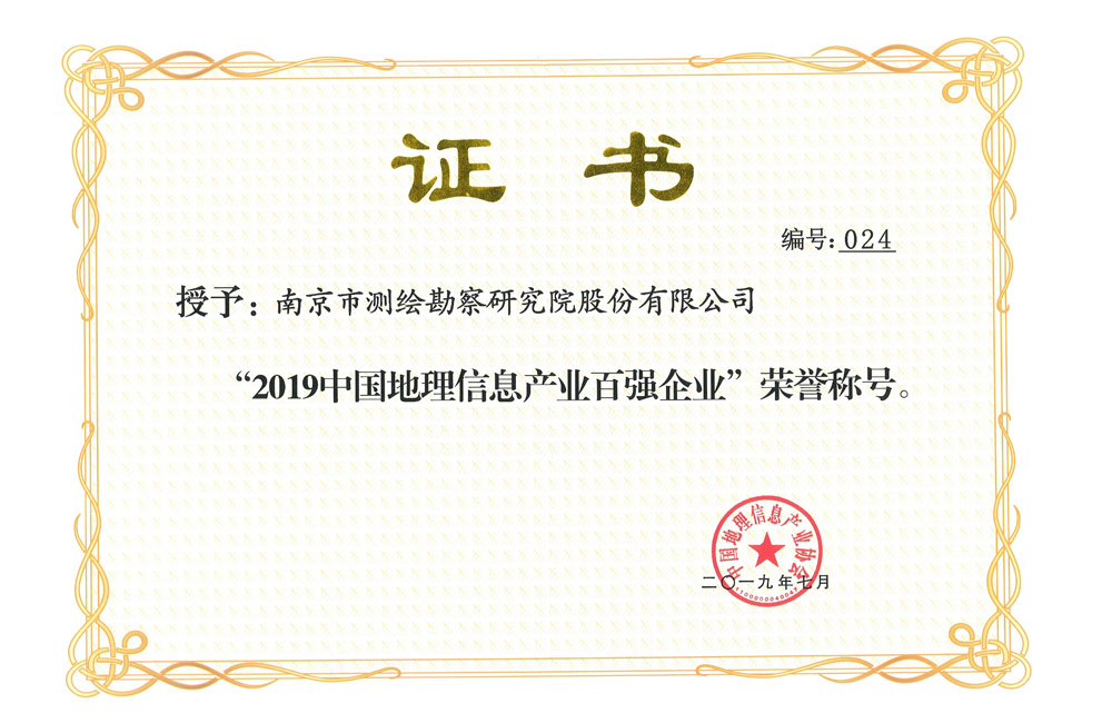 2019年中国地理信息产业协会百强企业